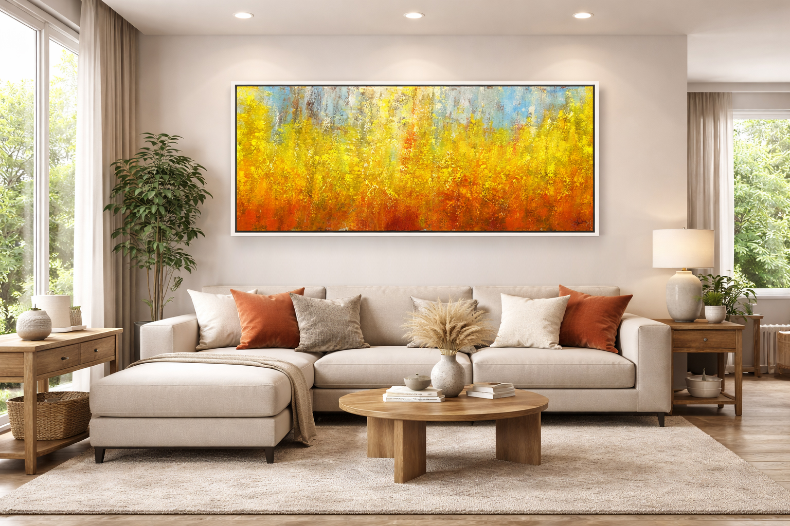 Tác phẩm: Nắng Đông Chất liệu: Acrylic/canvas Kích thước: 200cm x 80cm Sáng tác: 2026