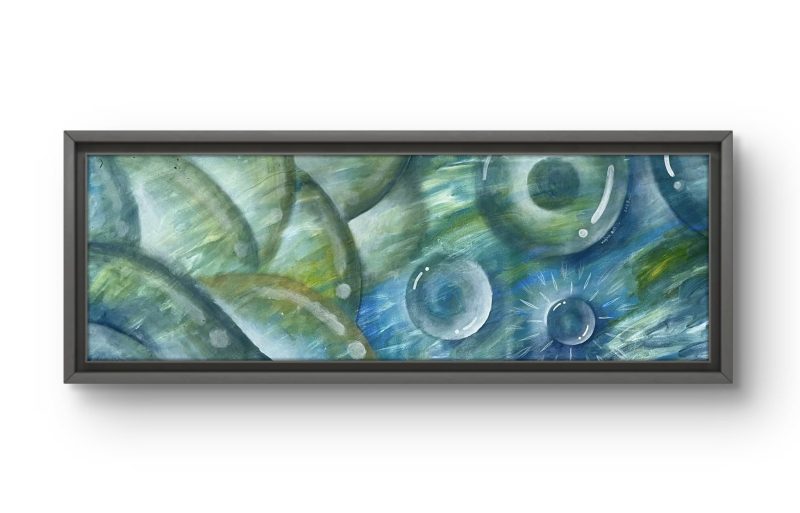 Tích Thủy Nhãn Châu 01 là bức tranh thuộc bộ tranh “Thiên Nhãn”, tái hiện khoảnh khắc thượng đế quan sát năng lượng tụ hội trong từng dòng chảy của tạo hóa. Từ trên cõi trời, ngài thấy vô số giọt nước bé nhỏ hợp thành một luồng sức mạnh dồn nén, xoáy lại thành “nhãn châu” lấp lánh ở tâm điểm. Đó là khoảnh khắc dòng chảy không còn chỉ là nước, mà trở thành nguồn lực nguyên thủy, có thể bào mòn, nuôi dưỡng và kiến tạo. Bức tranh khắc họa sự tích tụ âm thầm nhưng mãnh liệt ấy, nơi quyền năng của tự nhiên được hội tụ trong một điểm sáng thiêng liêng.